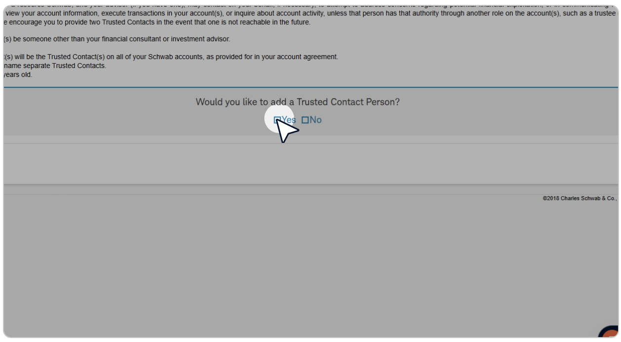 We recommend adding at least one Trusted Contact Person, if appropriate, such as a spouse or close family member as a backup access person.